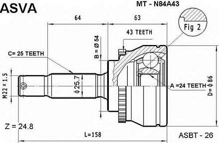 Характеристикитовара ШРУС внешний ASVA MTN84A43