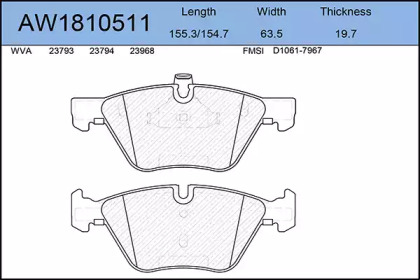 AYWIPARTS AW1810511 шт.1 раб. деньНет в наличииКомплект тормозных колодок, дисковый тормоз