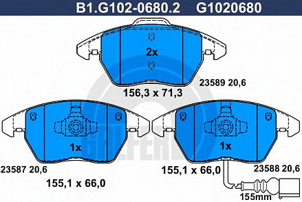 GALFER B1G1020680210 шт.1 раб. день5228Комплект тормозных колодок, дисковый тормоз