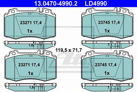 Характеристикитовара Комплект тормозных колодок, дисковый тормоз ATE 13047049902